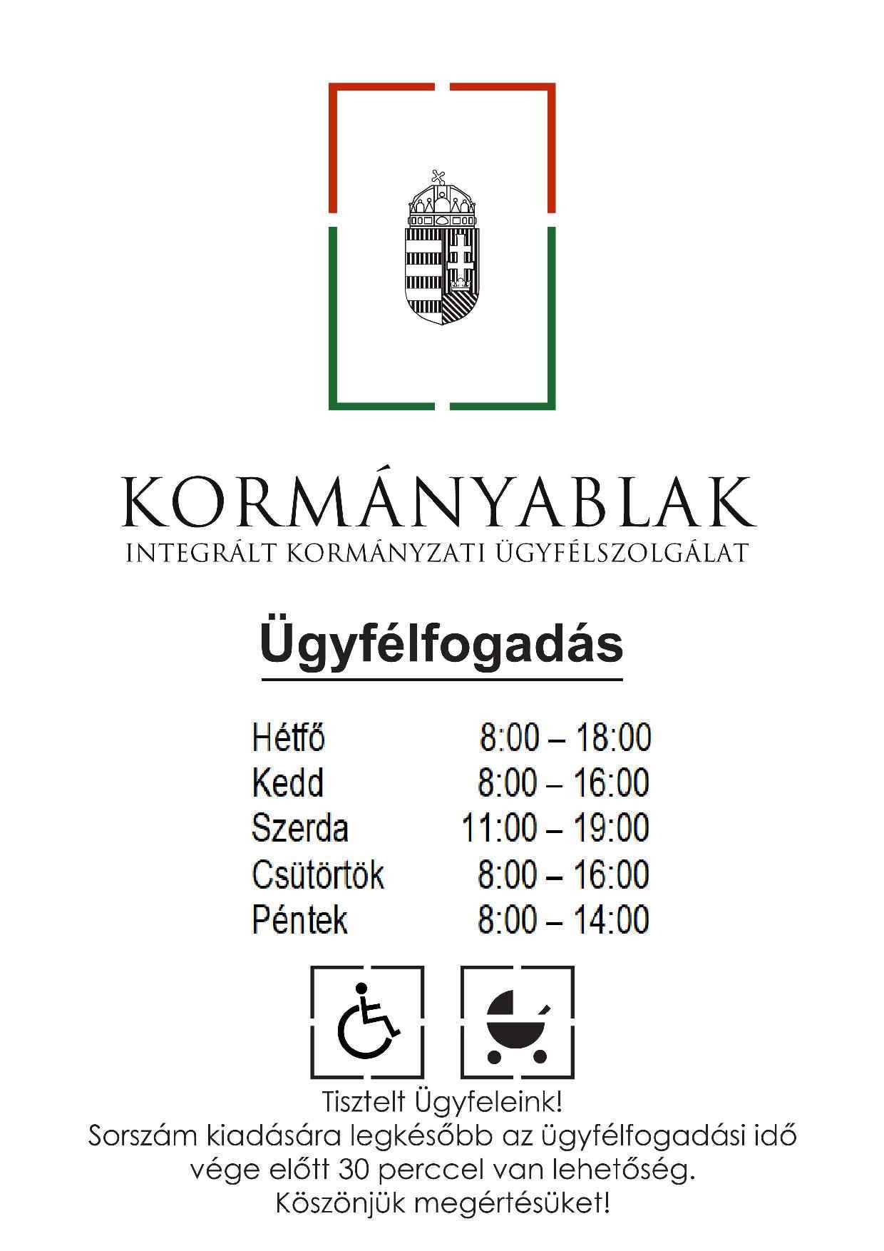Kormányhivatal illetékességi területén működő kormányablakok esetében továbbra is cél, hogy a két hivatal által működtetett kormányablakok egységes nyitvatartási rendben fogadják ügyfeleiket.