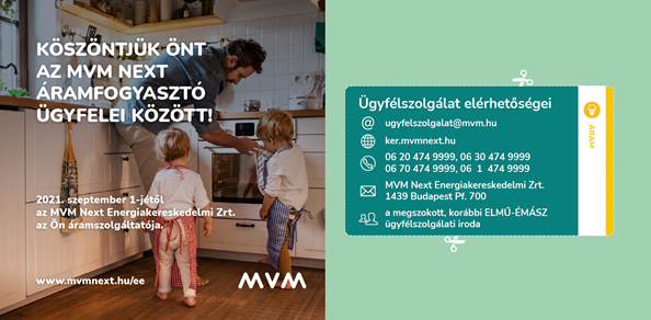A hazai energetikai szektorban példa nélküli, sikeres tranzakció lezárult, így már az MVM Next biztosítja Önnek az áramszolgáltatást. Felhívjuk szíves figyelmét, hogy áramszolgáltatással kapcsolatos ügyeit a jelen tájékoztatóban ismertetett elérhetőségeken működő online ügyfélszolgálat és mobilapplikáció segítségével könnyedén intézheti.