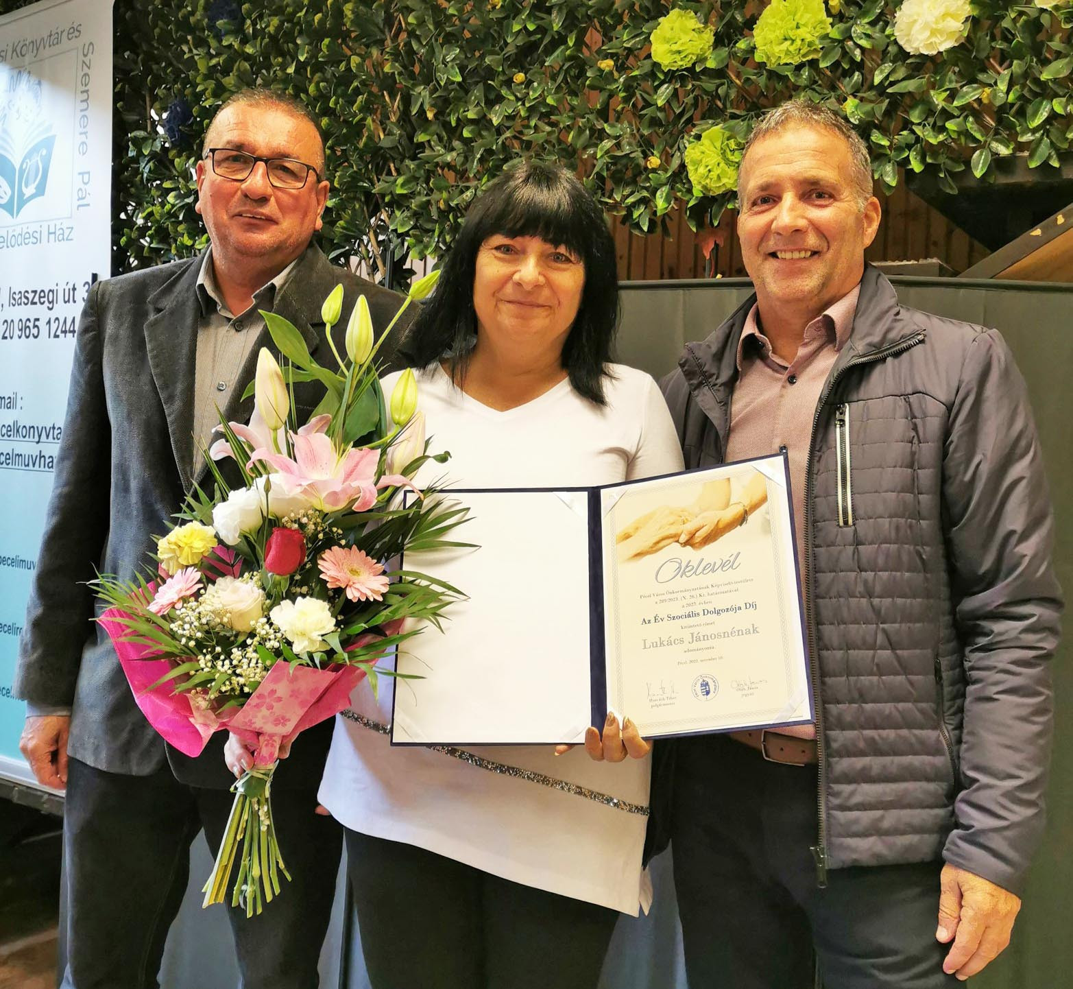 Az Év Szociális Dolgozója Díjat Lukács Jánosnénak Horváth Tibor polgármester adta át.
