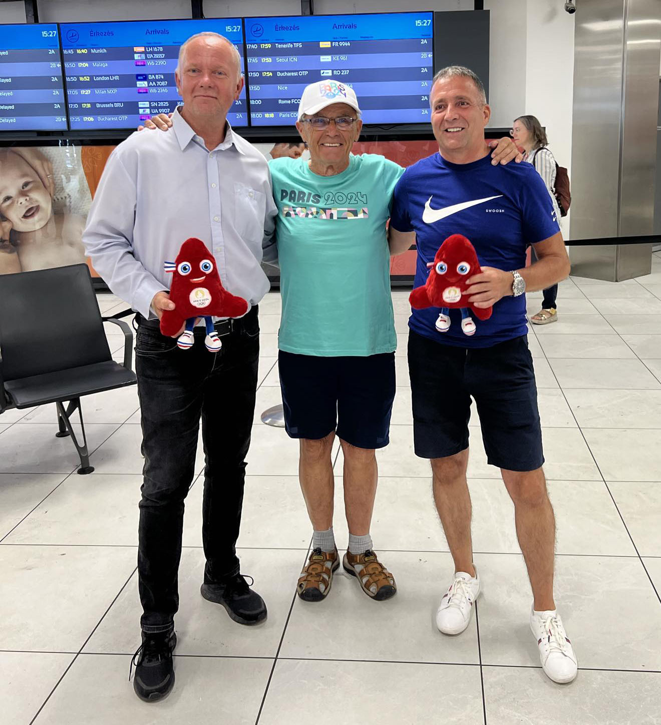 Szabó Zoltán Ferenccel, Szentes polgármesterével és néhány lelkes szurkolóval, baráttal fogadtam Cseuz Lászlót a reptéren. Hazafelé nem vállalta már biciklivel az utat a 80 éves kerékpáros. Párizs felé többször is eltévedt, így összesen közel 2000 km-t tett meg.
