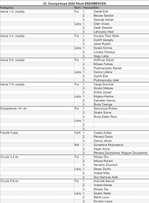 A tombolahúzás után következett az eredményhirdetés. A győztesek kupát kaptak, a 2. és 3. helyezettek érmet. A díjakat Horváth Tibor polgármester, Böszörményi Csaba, a PIOK főigazgatója, Nagy Erzsébet, a PIOK Petőfi Sándor Általános Iskola tagintézmény vezetője adta át.