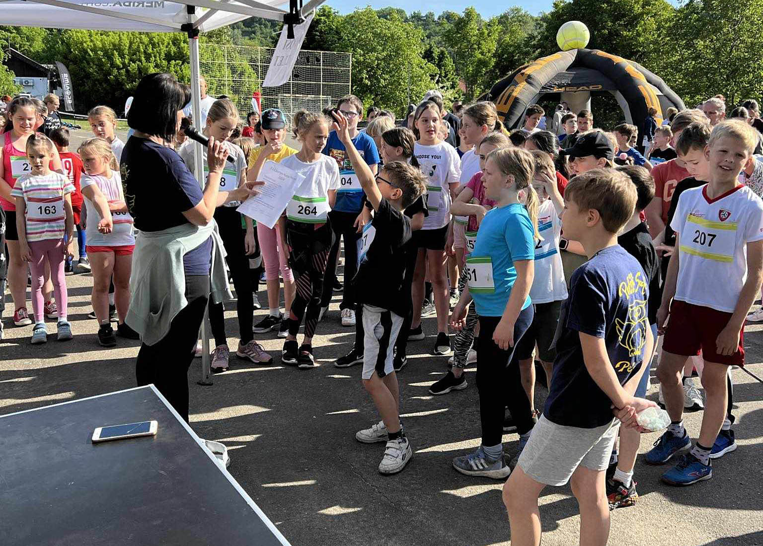 A ragyogó napsütéses reggelen rögtön a bemelegítés után elrajtoltak a kerékpárosok, akik két óra hosszat tekertek a dimbes-dombos erdőben. A futóversenyek sorát az 1-2.-os tanulók kezdték, majd a közönség drukkolhatott a többi iskolásnak, a felnőtteknek és az óvodásoknak.