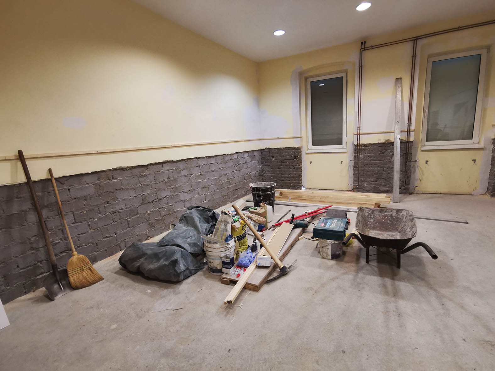 Folyamatban van még: a beázott mosókonyha gipszkarton cseréje, festése emeleti beázások javítása.