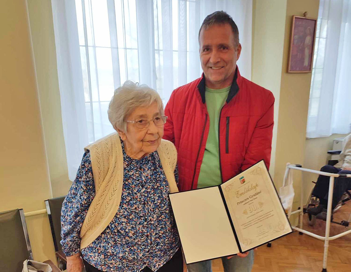 A mai napon az egész Jézus Szíve Társasága Idősek Otthona Princzes Gyuláné Ica nénit ünnepelte.