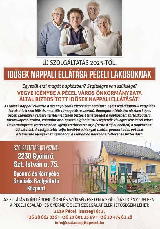 Idősek nappali ellátása péceli lakosoknak - várjuk jelentkezésüket!