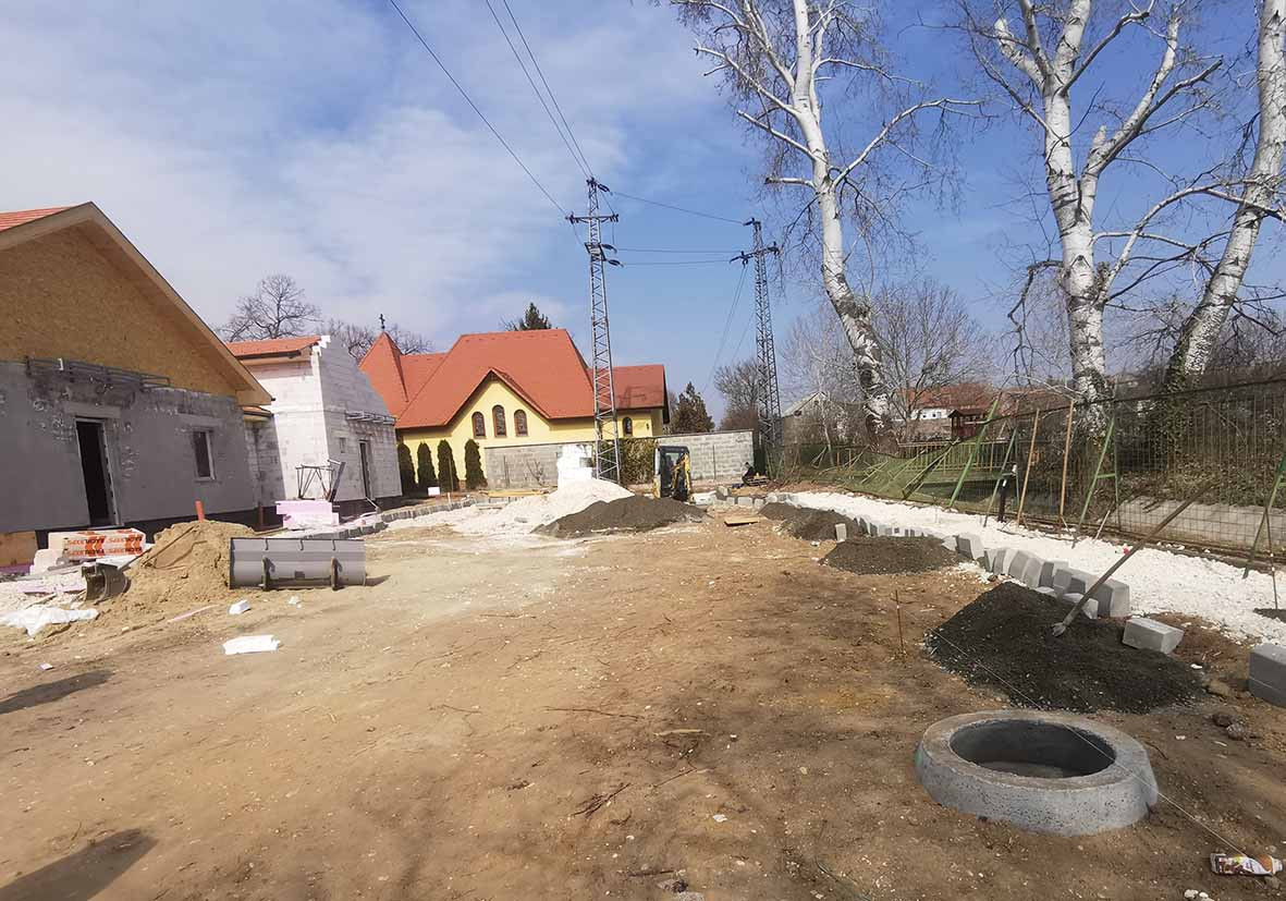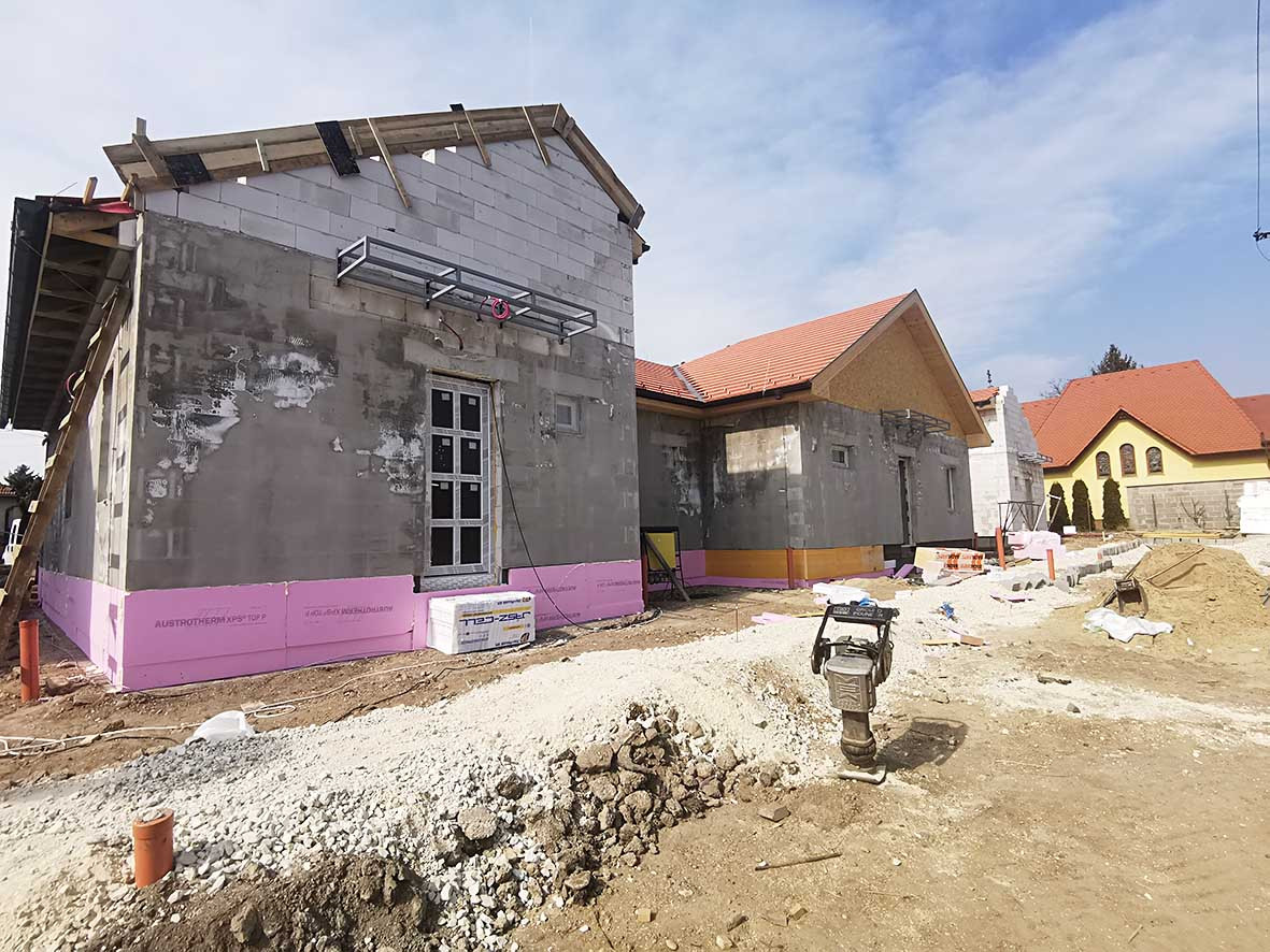 Jelenleg a tetőhéjalása történik, vagyis a teljes tetőszerkezeten a vízzáró réteg elkészítése, mely tartalmazza a felületi a vízzáró réteg elkészítését, valamint a felületen összegyűlt csapadékvíz vízzáró elvezetését. ezzel egyidejűleg folynak a bádogos munkák, és a nyílászárók elhelyezése a homlokzaton, valamint a belső terek padozati hőszigetelését és az aljzatbetonozását végzik a szakemberek. Homlokzati és külső munkákat illetően zajlik a homlokzati hőszigetelés, hálózás és glettelés. A külsőterületeket és a parkolót érintően a parkoló durva ágyazatának kiépítése, és a szegélykövek elhelyezése történik a napokban.