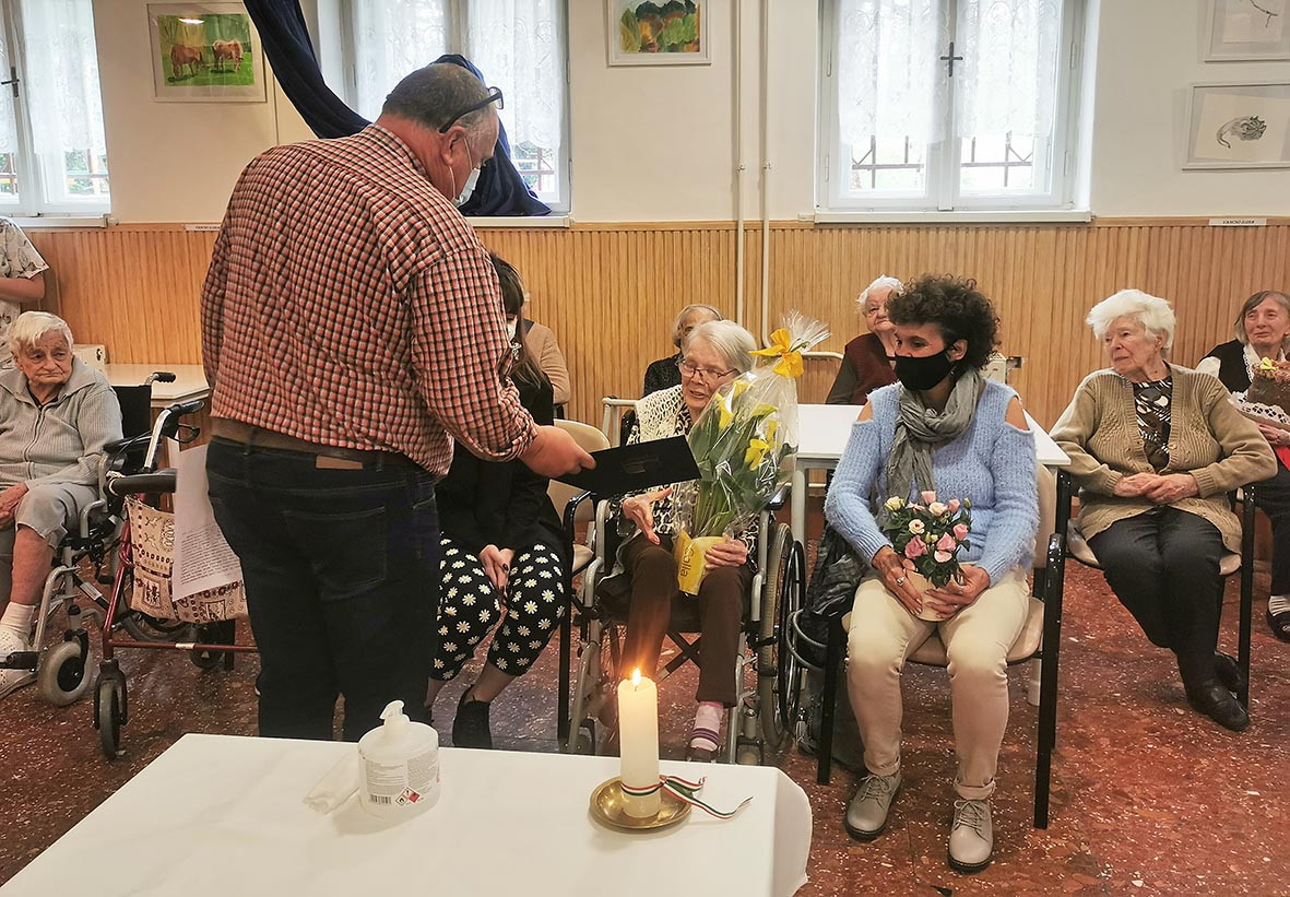 A mai napon Balog Lajosnét 95. születésnapja alkalmából köszöntötte Sarlós Imre alpolgármester úr a Jézus Szíve Társasága Idősek Otthonában. Julika néni meghatódva fogadta a tortát, az oklevelet és a virágot.