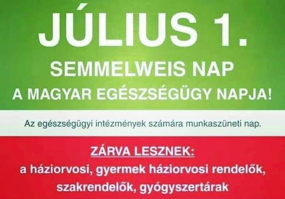 Július 1. Semmelweis-nap, munkaszüneti nap az egészségügyben dolgozóknak