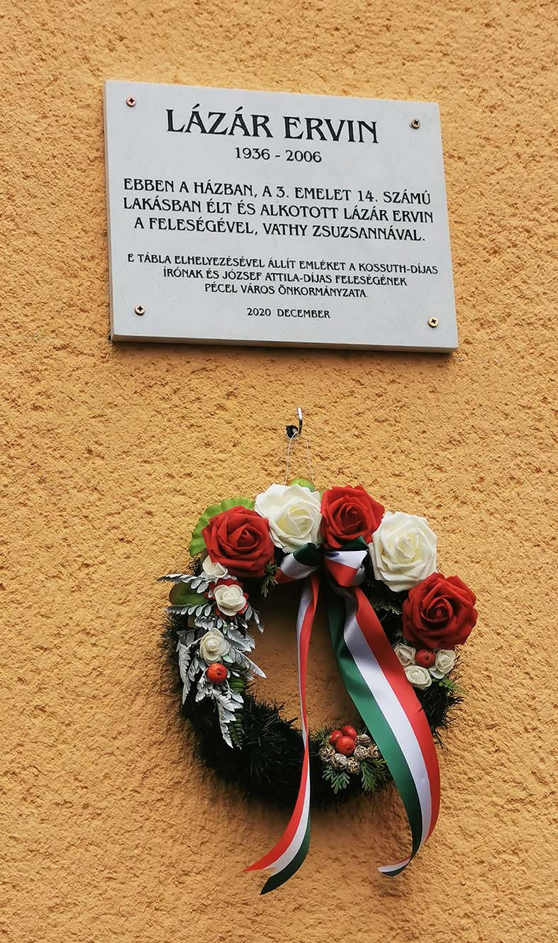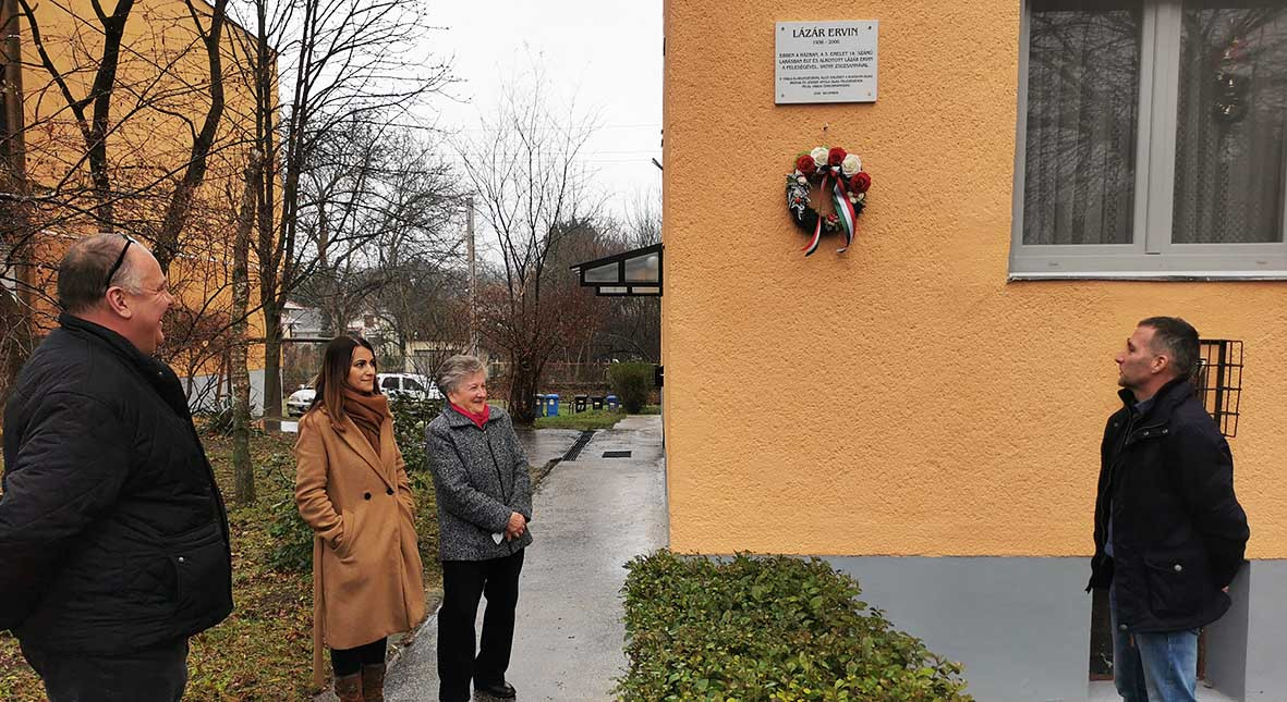 Tavarnai Edéné közös képviselő, Horváth Tibor polgármester és Sarlós Imre alpolgármester szűk körben felavatta a Lázár Ervin emlékére készített emléktáblát halálának évfordulóján 2020.december 22-én délelőtt.