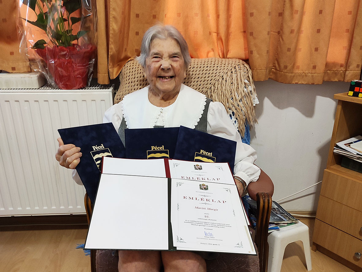 Margit néni hálás Istennek a hosszú, tartalmas és boldog életért, amit kapott tőle és mindenkinek ilyen hosszú és elégedett életet kíván. Viccelődött, hogy azt a két évet ő már le fogja tagadni. Mindenkinek hatalmas szeretet küld, és azt üzente, jövőre újra találkozunk.