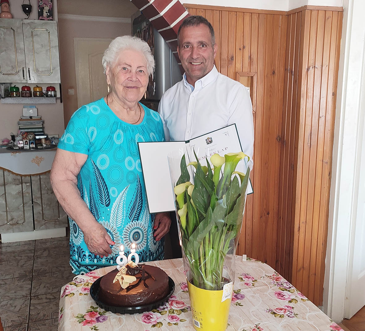 Gyerő Sándorné Marikát 90. születésnapja alkalmából, otthonában köszöntette Horváth Tibor polgármester.