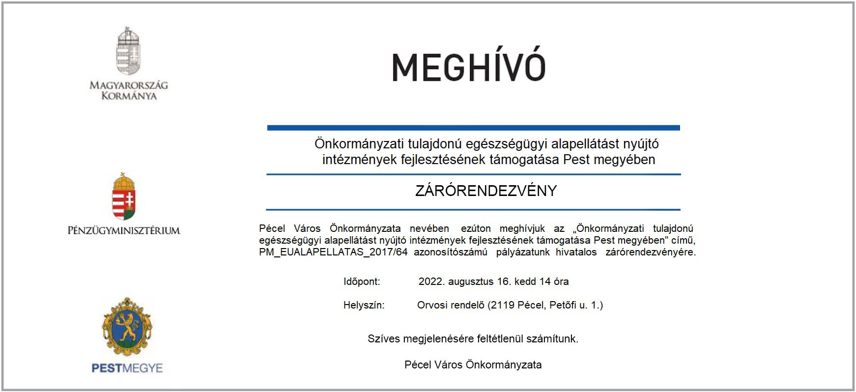 A zárórendezvény időpontja 2022. augusztus 16. kedd 14 óra, helyszíne Pécel Petőfi utca 1 szám.