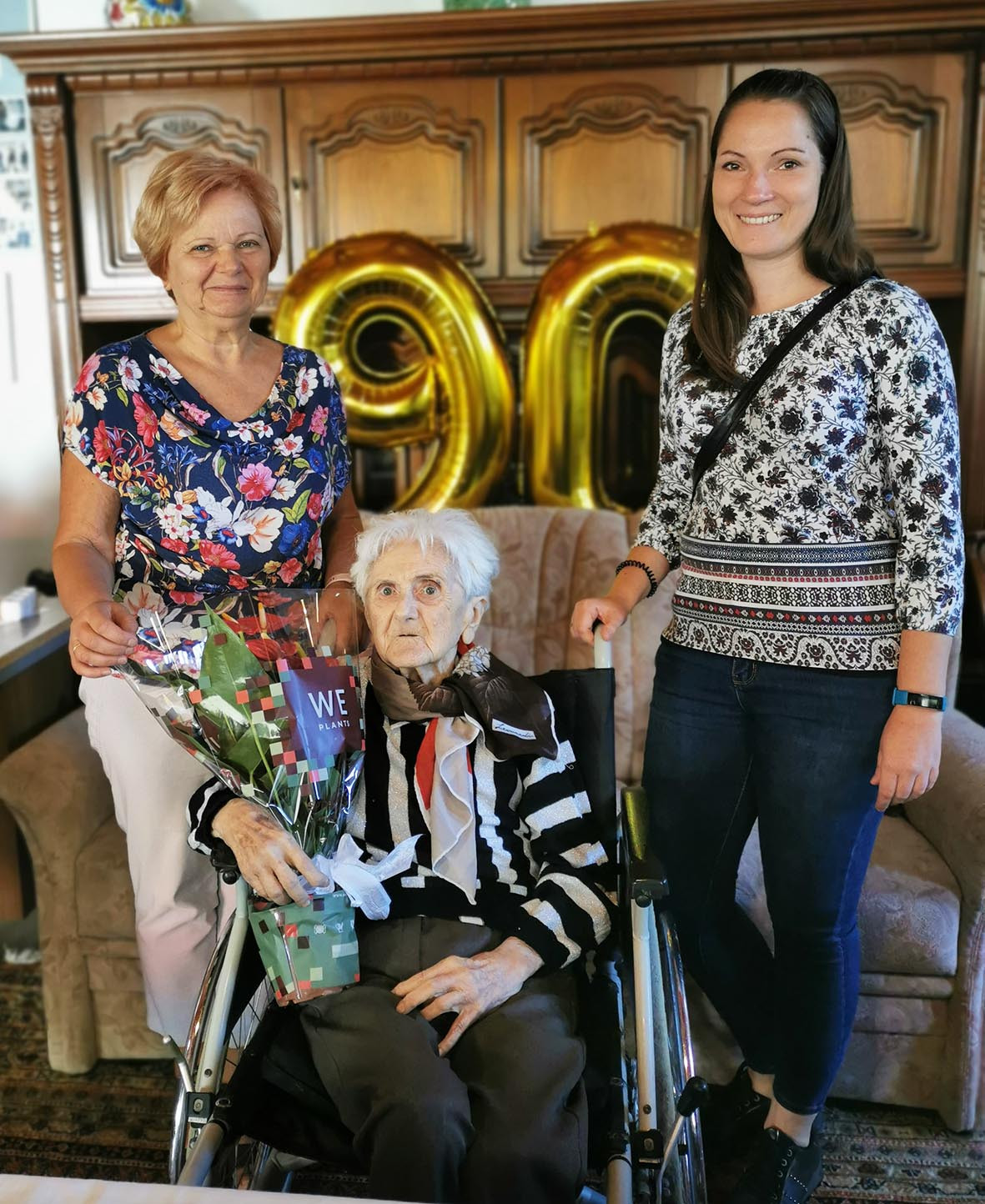 Ötvös Edénét Anci nénit 90. születésnapja alkalmából Horváth Tibor polgármester köszöntötte az ESE Baczoni István Rehabilitációs és Ápoló Otthonában.