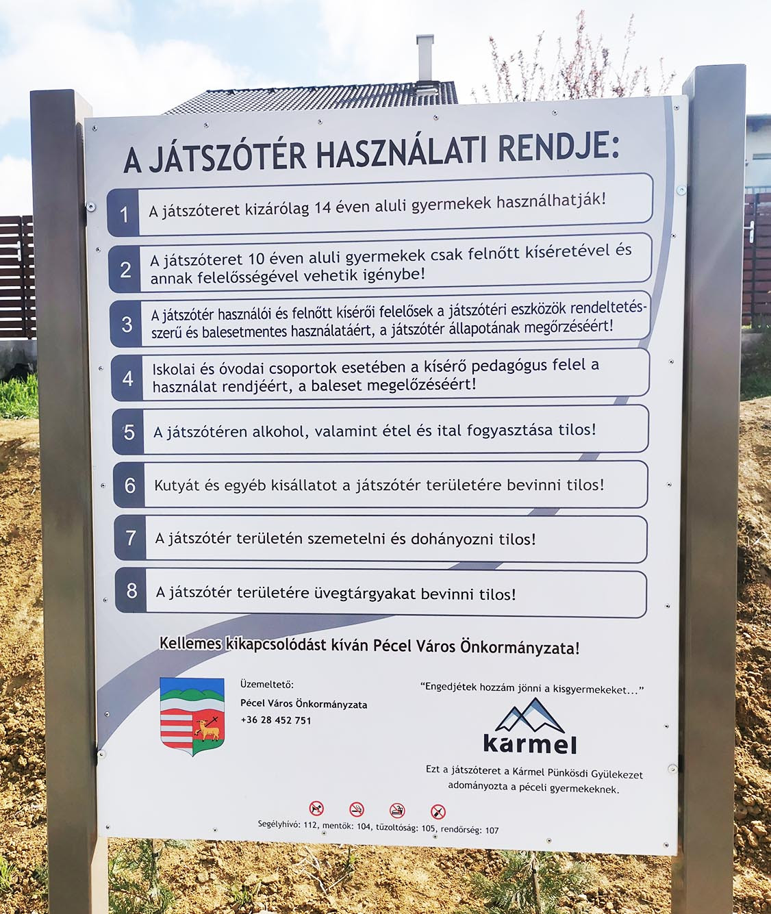 A Pécel Kft. kivitelezésében készült játszóparkot Horváth Tibor polgármester, Sarlós Imre alpolgármester, Kristóf Péter a 6. körzet képviselője és a Kármel Pünkösdi Gyülekezet részéről Prekopa Zoltán Lelkipásztor adta át a gyerekeknek április 16-án délelőtt.