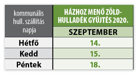HÁZHOZ MENŐ CSOMAGOLÁSI HULLADÉKGYŰJTÉS: 2020. szeptember 7.