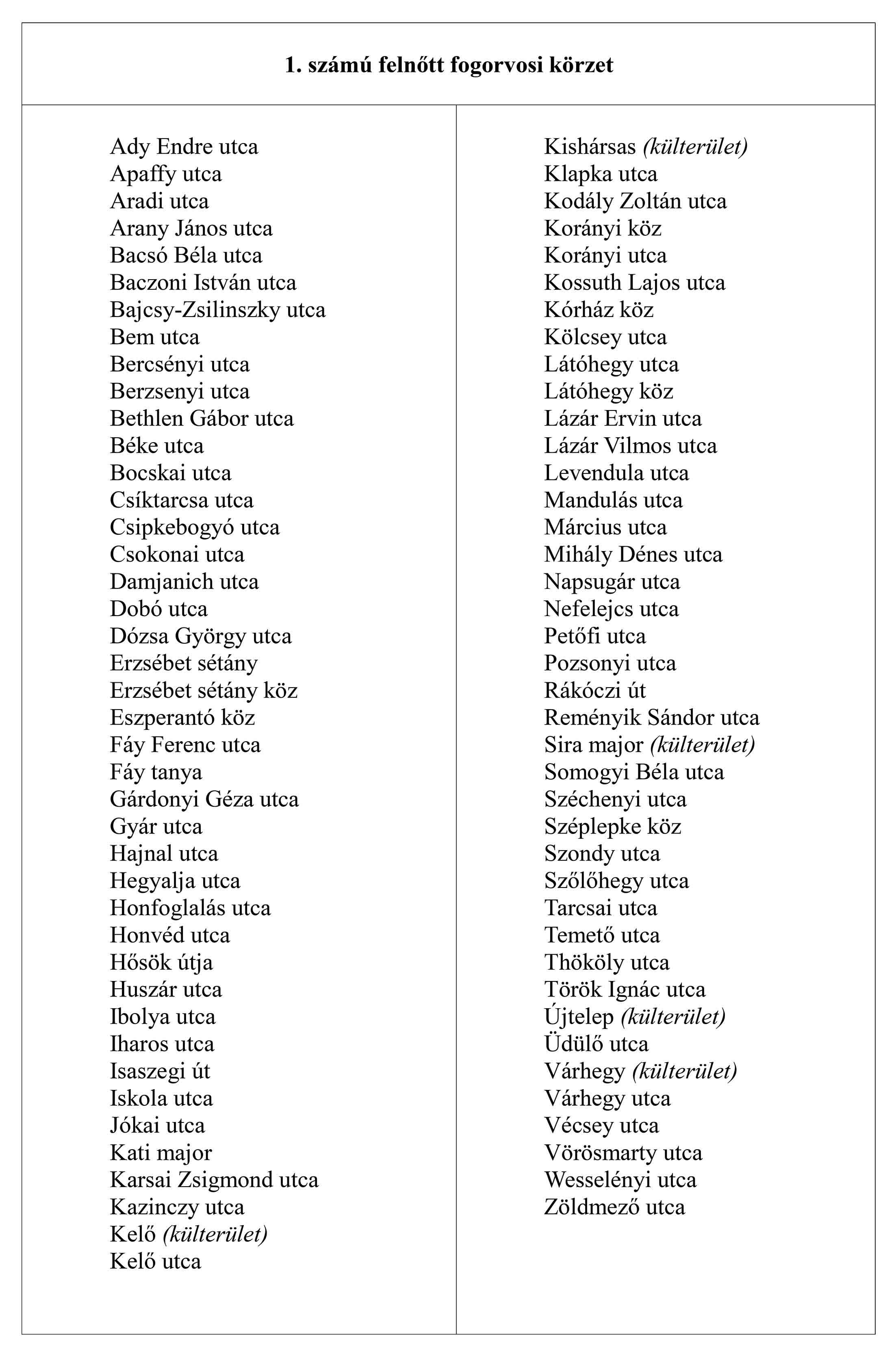 1. védőnői körzet:
